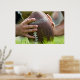 Une affiche montrant les mains d'un joueur de football pendant l'entraînement.