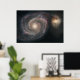 Les bras gracieux et sinueux de la majestueuse galaxie en spirale M51 (NGC 5194) semblent être un grand escalier en spirale qui balaie l'espace. Ce sont en fait de longues voies d'étoiles et de gaz lacérés de poussière. Cette image la plus pointue de la Galaxie du Whirlpool, prise en janvier 2005 avec la caméra avancée pour les études à bord du télescope spatial Hubble de la NASA, illustre le grand design d'une galaxie en spirale, de ses bras en spirale incurvés, où résident de jeunes étoiles, à son noyau central jaunâtre, foyer d'étoiles plus anciennes. La galaxie est surnommée le Whirlpool en raison de sa structure tourbillonnante. La caractéristique la plus frappante du Whirlpool est ses deux bras en courbe, un des galaxies dites en spirale grand-design. De nombreuses galaxies en spirale possèdent de nombreux bras de forme lâche qui rendent leur structure en spirale moins prononcée. Ces armes servent un but important dans les galaxies en spirale. Ce sont des usines de formation d'étoiles, qui compressent le gaz hydrogène et créent des grappes de nouvelles étoiles. Dans le Whirlpool, la ligne d'assemblage commence par les nuages sombres de gaz sur le bord intérieur, se déplace vers les régions de formation d'étoiles rose vif, et se termine par les brillants amas d'étoiles bleus le long du bord extérieur. Certains astronomes pensent que les bras du Whirlpool sont si proéminents en raison des effets d'une rencontre étroite avec NGC 5195, la petite galaxie jaunâtre à l'extrémité extérieure de l'un des bras du Whirlpool. À première vue, la galaxie compacte semble être en train de se cogner sur le bras. La vue claire de Hubble montre cependant que NGC 5195 passe derrière le Whirlpool. La petite galaxie glisse au-delà du Whirlpool depuis des centaines de millions d'années. À mesure que NGC 5195 dérive, son muscle gravitationnel pompe des ondes dans le disque en forme de crêpe du Whirlpool. Les vagues sont comme des ondulations dans un étang généré quand une roche est jetée dans l'eau. Lorsque les vagues traversent des nuages de gaz en orbite à l'intérieur du disque, elles pressent le matériau gazeux le long du bord interne de chaque bras. Le matériau poussiéreux foncé ressemble à un amas de nuages de tempête. Ces nuages denses s'effondrent, créant un sillage de la naissance de l'étoile, comme on le voit dans les régions qui forment l'étoile rose vif. Les plus grandes étoiles finissent par balayer les cocons poussiéreux avec un torrent de radiations, des vents stellaires de type ouragan et des ondes de choc des explosions de supernova. Des amas d'étoiles bleues brillantes émergent du chaos, illuminant les bras du Whirlpool comme les réverbères de la ville. Le Whirlpool est l'un des rois galactiques de l'astronomie. Située à 31 millions d'années-lumière dans la constellation Canes Venatici (les Chiens de Chasse), la belle vue face-à-face et la proximité de la Terre de Whirlpool permettent aux astronomes d'étudier la structure d'une galaxie en spirale classique et les processus de formation d'étoiles.