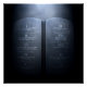 Deux tablettes en pierre avec les dix commandements gravés dessus, éclairées par un projecteur spectaculaire sur un arrière - plan sombre