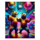 Ours De Danse À La Discothèque Poster Boules De Discothèque Étoiles Étoiles Reflexions