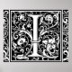 Poster Lettre I Monogramme médiéval Vintage initial
