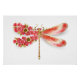 Artiquement dessiné, or, libellule bijouée de rouge et ailes décorées de rouge, fleurissant, cerise japonaise bijouée sur arrière - plan blanc. La libellule d'or.