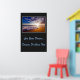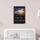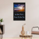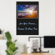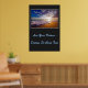 Affiche illustrée avec une photo d'un beau coucher de soleil sur la plage. L'arrière - plan de l'affiche est une couleur de charbon de bois. Customisez cet objet ou achetez tel quel. Image stock