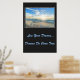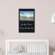 Affiche illustrée avec une photo d'un beau coucher de soleil sur la plage. L'arrière - plan de l'affiche est une couleur de charbon de bois. Customisez cet objet ou achetez tel quel. Image stock