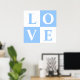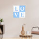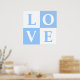 Poster en bloc bleu/blanc avec lettres d'amour. Customisez cet objet ou achetez tel quel.