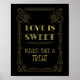 L'amour est doux bar à sucré ou affiche de table dessert pour mariage avec cadre doré vintage et texte art déco.