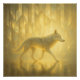 Step into a radiant dreamscape with this luminous wolf artwork from GeoWild Designs. A serene white wolf walks gracefully across a glowing floor, surrounded by tall geometric light panels that shimmer with warm golden hues. Soft haze, delicate reflections, and ethereal lighting blend realism with elegant fantasy, creating a peaceful and magical atmosphere.