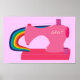Cette illustration de couture rétro délicieusement artisanale présente une machine à coudre rose vif avec le mot "coudre" sur elle couture un arc-en-ciel coloré avec fil rose! Cette couture originale d'inspiration vintage est le cadeau unique à acheter pour couturier ou couturier dans votre vie!