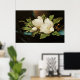 Poster Magnolias géant sur un tissu de velours bleu par M