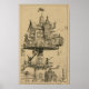 Il s'agit d'une copie de l'ancienne encre de 1883 sur le graphite de l'illustration de "Maison tournante aérienne". Le dessin montre une structure d'habitation surélevée au-dessus des toits et conçue pour tourner et s'ajuster dans différentes directions. Un occupant pointe vers un aéronef avec un sac en forme de poisson dans le ciel en bas à droite. Une des conceptions de l'artiste pour son livre sur la vie dans le XXe siècle.par Albert Robida