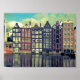 Les maisons sont inclinées, une caractéristique unique des maisons en Hollande. Ciel bleu avec nuages. Maisons le long d'une rivière.