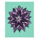 Mandala ressemble à une affiche florale avec un dessin abstrait à l'encre d'une fleur violette avec des pétales pointus sur arrière - plan bleu clair personnalisable.