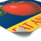 Mangez un slogan Apple avec une illustration vintage de pomme dans des couleurs primaires rétro et brillantes de rouge, bleu, jaune et vert. Un grand rappel de manger sain, et une amusante image de pomme vintage kitschy.