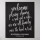 Un élégant panneau mariage de pointe comporte le texte "Bienvenue, s'il vous plaît choisir un siège, pas un côté; nous sommes tous la famille une fois le noeud est lié" dans une police de script extravertie; la texture de la brosse ajoute une sensation spontanée et ludique. La couleur de l'arrière - plan peut être personnalisée selon vos besoins et vos préférences ; veuillez me contacter si vous avez des demandes spéciales. VEUILLEZ NOTER : Pour obtenir de l'aide sur les commandes, l'expédition, l'information sur les produits, etc., contactez le service à la clientèle de Zazzle directement https://help.zazzle.com/hc/en-us/articles/221463567-How-Do-I-Contact-Zazzle-Customer-Support-.