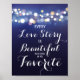 Poster Mariage de guirlande de lumières Navy Chaque histo