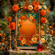 Poster Mariage druide d'automne orange et vert