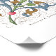 Poster Mariage médiéval aux oiseaux et fleurs illuminés