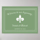 Poster d'accueil Mariage sobre et élégant, avec une fleur de lis contre un arrière - plan vert mousse. Ce design est un choix unique pour un mariage moderne. Facile à customiser avec vos détails mariages. Cliquez sur "Customiser" pour trouver d'autres options de personnalisation.