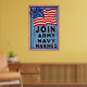 Fabuleux Poster Patriotique Retro. Rejoignez les Marines de la Marine de l'Armée. affiche de recrutement vintage montrant un grand drapeau américain. Cette affiche a été magnifiquement restaurée et améliorée par nous à l'usine Vintage. Nous avons aussi ce poster vintage sur d'autres produits.
