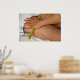 Les choses à voir avec le massage au bambou. Ici, vous voyez le bâton de bambou vert utilisé sur l'avant de la jambe.Bye roulant vers le haut et le bas de la jambe.avec une serviette blanche sur ses attentes.Cette affiche fonctionne très bien pour les massothérapeutes et ceux qui travaillent dans l'industrie du spa et de la beauté.