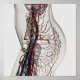 Medical illustration of arteries, veins and lymphatic system in female midsection.