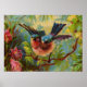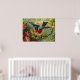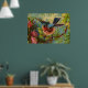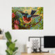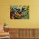 Cette impression colorée illustre un bleuet reposant sur une branche dans une forêt fleurie. Cette vue montre l'oiseau sur le point de prendre son envol. Bleu, rose, jaune et vert vif font une image passionnante pour le décor et les accessoires personnels.