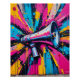 Dive into the pulsating world of urban street art with this vibrant graffiti mural. A megaphone takes center stage, its metallic silver body adorned with colorful accents that pop against the bold splashes of neon pinks, blues, and yellows. Abstract shapes, drips, and dots fill the background, creating a dynamic and energetic composition that captures the raw spirit of the streets. Printed on high-quality poster paper, this piece is perfect for those who appreciate the chaos and harmony of graffiti culture.