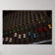 Photographie de fermeture de faders colorés sur une planche de mixage d'un studio d'enregistrement