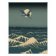 Océan tourbillonnant avec une grue Oiseau volant au-dessus dans un style oriental traditionnel.