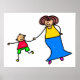 Un joli dessin humoristique représentant une mère et un fils caucasiens heureux se tenaient la main. Customisez facilement et choisissez votre propre couleur arrière - plan ou ajoutez du texte. Image disponible sur divers cadeaux et produits.