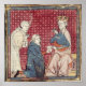 Messagers F.117r de l'Ecole Française racontant à Charlemagne la victoire sur les Saracens, des Grandes Chroniques de France, 1375-79, située à la Bibliotheque Municipale, Castres, France. Les Messagers F.117r qui racontent à Charlemagne la victoire sur les Saracens, des Grandes Chroniques de France, 1375-1379, ont été créés vers le 14ème siècle.