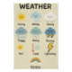 Faites-vous plaisir en apprenant le temps avec cette adorable affiche ! Avec des illustrations gaies comme ensoleillées, pluvieuses, enneigées, etc., ce design coloré aide les tout-petits et les jeunes enfants à reconnaître différents types de temps. Parfait pour les crèches, les salles de jeux ou les classes préscolaires.