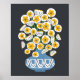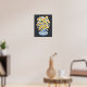 Un charmant bouquet joyeux de fleurs blanches dans un vase rond, bleu et moyen-mod. Ajoutez cette pop de bonheur moyen-mod à n'importe quel mur dans votre maison ou votre dortoir !