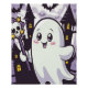 Une affiche charmante et fantaisiste avec un fantôme mignon tenant une baguette magique éffrayante ornée d'un crâne. L'arrière - plan présente un château hanté avec des tourelles et des chauves-souris qui volent, le tout enveloppé dans une teinte mauve douce. Ce délicieux mélange d'éléments mignons et éffrayants en fait un complément parfait à la décoration d'Halloween ou pour apporter un mystère ludique à tout espace.