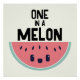 Affiche kawaii mignonne avec une adorable tranche de pastèque aux yeux clairs et un doux sourire. Au-dessus de la tranche de melon se trouvent les mots One In A Melon en lettres noires.
