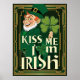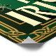 Cette affiche audacieuse à thème irlandais présente un leprechaun espiègle avec un sourire sourd et une lueur ludique dans ses yeux verts. Ses cheveux roux et sa barbe blanche tranchante contrastent avec l'émeraude profonde de son costume vert sur mesure, avec un chapeau classique orné d'une boucle dorée. Les traits faciaux exagérés, les sourcils voûtés et le sourire confiant donnent à la leprechaun une personnalité gaie, presque trompeuse. D'une part, il tient un trèfle à quatre feuilles détaillé, symbolisant la chance et la tradition irlandaise, tandis que des nouages celtes complexes et des accents dorés encadrent le design. Les verts et les dorés riches apportent profondeur et vitalité, faisant de cette oeuvre une pièce parfaite pour les décorations de la Saint Patrick, les évènements à thème ou les murailles d'inspiration irlandaise. Téléchargez ce design attrayant pour apporter une énergie festive et un soupçon de méfait à toute célébration.
