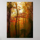 Le soleil du matin pique à travers les bois brumeux dans cette scène d'automne colorée.