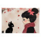 Cette illustration numérique capture le lien particulier entre une jeune femme et son chaton bien-aimé.