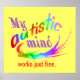 Mon esprit autiste fonctionne très bien. Avec un arc-en-ciel swish et "Autistic" dans des couleurs "peintes" arc-en-ciel.
