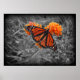 Beau papillon Monarque assis sur le papillon orange Mauvaise herbe contre un arrière - plan en échelle grise