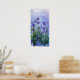 Poster de Monet Lilac Irises. Peinture à l'huile sur toile de 1917. Monet peint des iris tout au long de sa carrière, c'est l'un de ses derniers iris peints et certainement l'un de ses plus hantants. L'oeuvre est fortement impressionniste et les iris violets foncés semblent presque flotter dans l'eau au-dessus de leur feuillage vert foncé, le ciel au-dessus est bleu doux et violet. Un beau cadeau pour les amateurs de Claude Monet, d'impressionnisme, de peinture d'iris et d'art français.