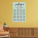L'affiche moderne et chic de l'affiche du mariage bleu menthe présente un design typographique noir élégant avec des accents de script de calligraphie audacieux et un élégant texte personnalisé qui peut être personnalisé avec un monogramme des noms de mariée et de mariée, les noms des invités organisés par leurs numéros de table attribués.
