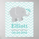 Poster Monogramme personnalisé moderne Aqua et Eléphane g
