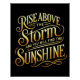 "Levez-vous au-dessus de la tempête et vous trouverez la lumière du soleil" Découvrez la puissance de la résilience et de l'espoir grâce à ce superbe design calligraphique doré. La citation motivationnelle "Rise Above the Storm and You Will Find the Sunshine" rayonne de positivité et d'élégance, dressée contre un arrière - plan foncé élégant à l'allure douce. Parfait pour inspirer et élever n'importe quel espace ou produit.