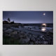 Image photographique en couleur High Dynamic Range des rochers et du rivage de White Point Beach Resort avec la lumière de la lune brillant sur l'eau de l'océan Atlantique. White Point se trouve sur la rive sud de la province de la Nouvelle-Écosse au Canada atlantique, sur la côte est du pays nord-américain du Canada.