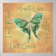 Cette affiche inspirante présente une image d'aquarelle d'une Luna Moth verte pâle et gracieuse, flottant contre un ciel doré et affirmant : "Je vais grandir, je vais évoluer, je vivrai, je me lèverai".