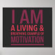 La typographie qui dit que je suis un exemple vivant et respirant de motivation. Affiche motivationnelle avec arrière - plan noir.