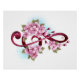 Pink treble clef with delicate, detailed pink Japanese cherry blossoms against white background painted over with light blue paint Blooming pink sakura.
