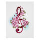 Pink treble clef with delicate, detailed pink Japanese cherry blossoms against white background painted over with light blue paint Blooming pink sakura.