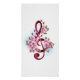 Pink treble clef with delicate, detailed pink Japanese cherry blossoms against white background painted over with light blue paint Blooming pink sakura.